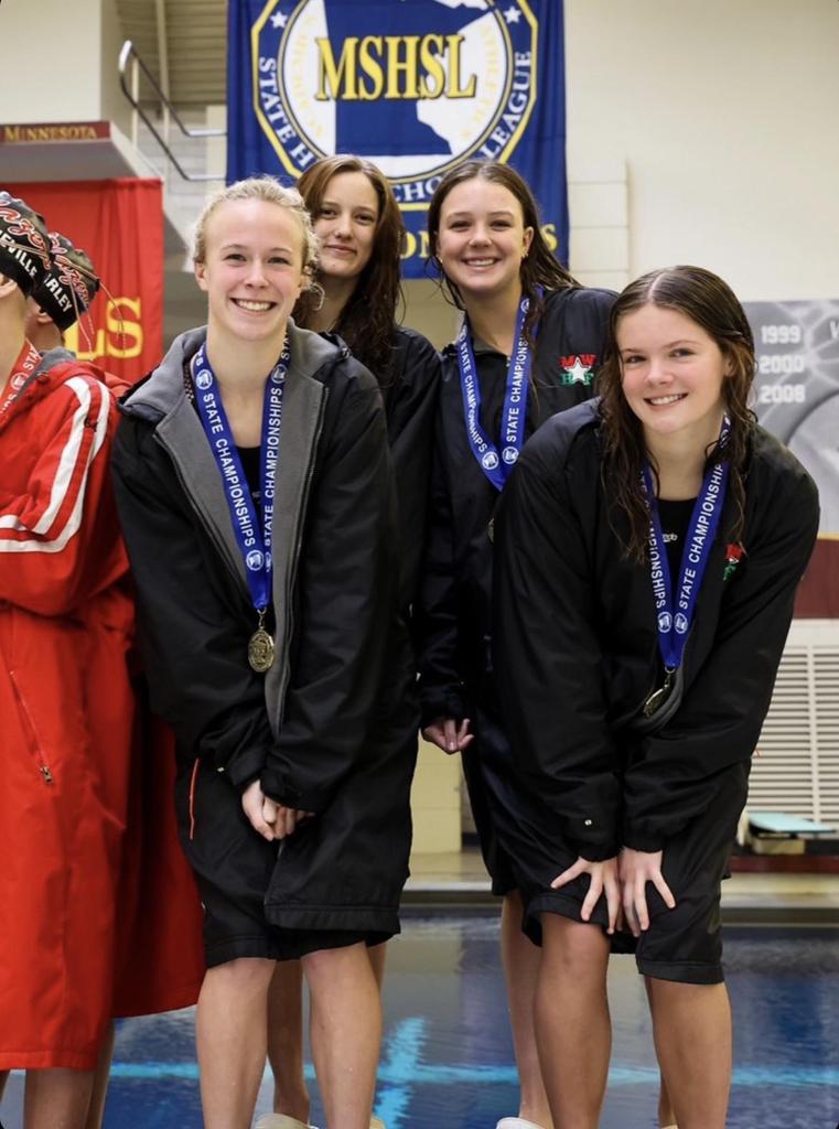 Coach Ben Hanson’s Mound Westonka/Holy Family (MWHF) girls swim and dive team earned a program-high third-place finish in the MSHSL Class A State Tournament November 16-18 at the University of Minnesota Jean K. Freeman Aquatic Center.