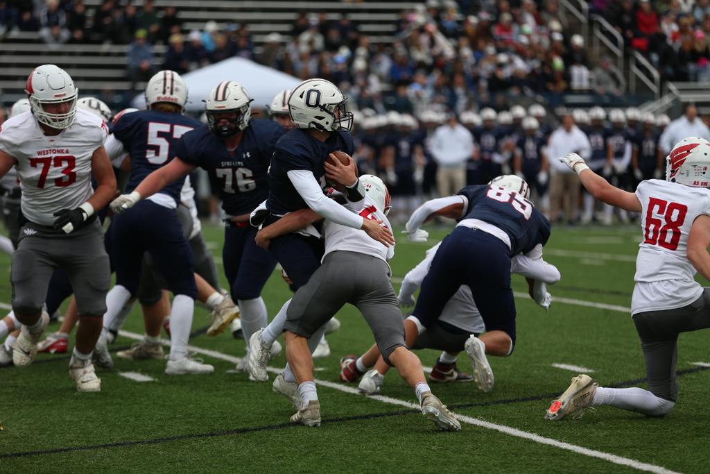 Long Lake, MN – Westonka’s football season came to an end on Saturday afternoon, falling to archrival Orono, 50-6, in a Section 6AAAA Semifinal match-up at Pesonen Stadium in front of a sparse crowd due to the cold and windy conditions.