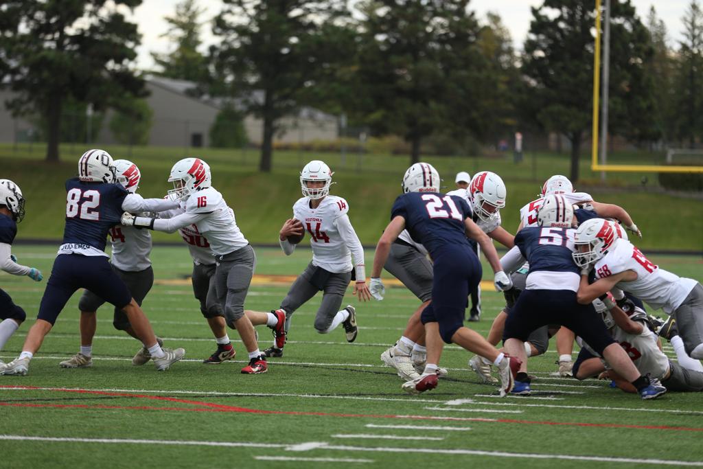 Offensively for the White Hawks, Wyatt Stepanek led the team with 9 attempts for 33 yards rushing, followed by Reinbold who finished with 26 yards on the ground and 25 yards receiving on 2 receptions. Newell had 23 yards rushing on 12 carries. Sophomore Will Pioske had one catch for 31 yards on a fake punt. On the defensive side of the ball, Reinbold had a game-high and season-high 9 tackles, all of them solo. Carter Holappa finished with 8 tackles. In their last high school game, Tebbs and Big Phil Pisarchuk tallied 8 tackles a piece with Tebbs having one tackle-for-loss. Senior Mason Merritt had six tackles, while fellow senior Andrew Hoisington added five tackles and a sack. Sophomore cornerback Max French chipped in 5 tackles. Anders Mjelstad had four tackles and the other sack along with a pass defended. Dane Sewell tallied four tackles and blocked an extra-point. Senior Glenn Givens finished with two assisted tackles.